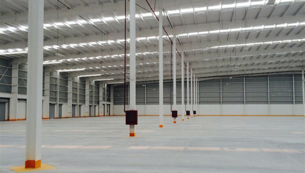 Infraestructura de transporte público. Comunicaciones y vialidades: Drenaje de aguas negras con conexón a planta de tratamientos del parque industrial QUERÉTARO; Salidas de emergencia; Acceso controlado; Comedores con materiales y colores de su elección; Separación entre columnas de 15 mts en sentido corto y 30 mts en sentido largo; Cambio de aire dentro de nave por medio de louvers y cebollas; Sistema contra incendio en nave (opcional); Red contra incendio del parque; Cisterna con capacidad de 100,000 lts.; 26 andenes de carga con rampas niveladoras; Sellos y bompers en andenes con capacidad de 6’ x 8’ de 25,000 lbs cada uno; 2 rampas de acceso para montacargas; 8 cajones de estacionamiento para cajas secas (contenedores); 50 cajones de estacionamiento; Pisos de concreto MR-38 con doble armado de espesor 15 cm; Muros Tilt-Up de concreto armado pintura de su elección; Edificio metálico (estructura) con alturas mínimas de 12 mts; Techos con sistema laminado galvanizado KR-18 10% de lámina traslucida marca ondex antiflamable; Aislante térmico en cubierta de 2’ de espesor.